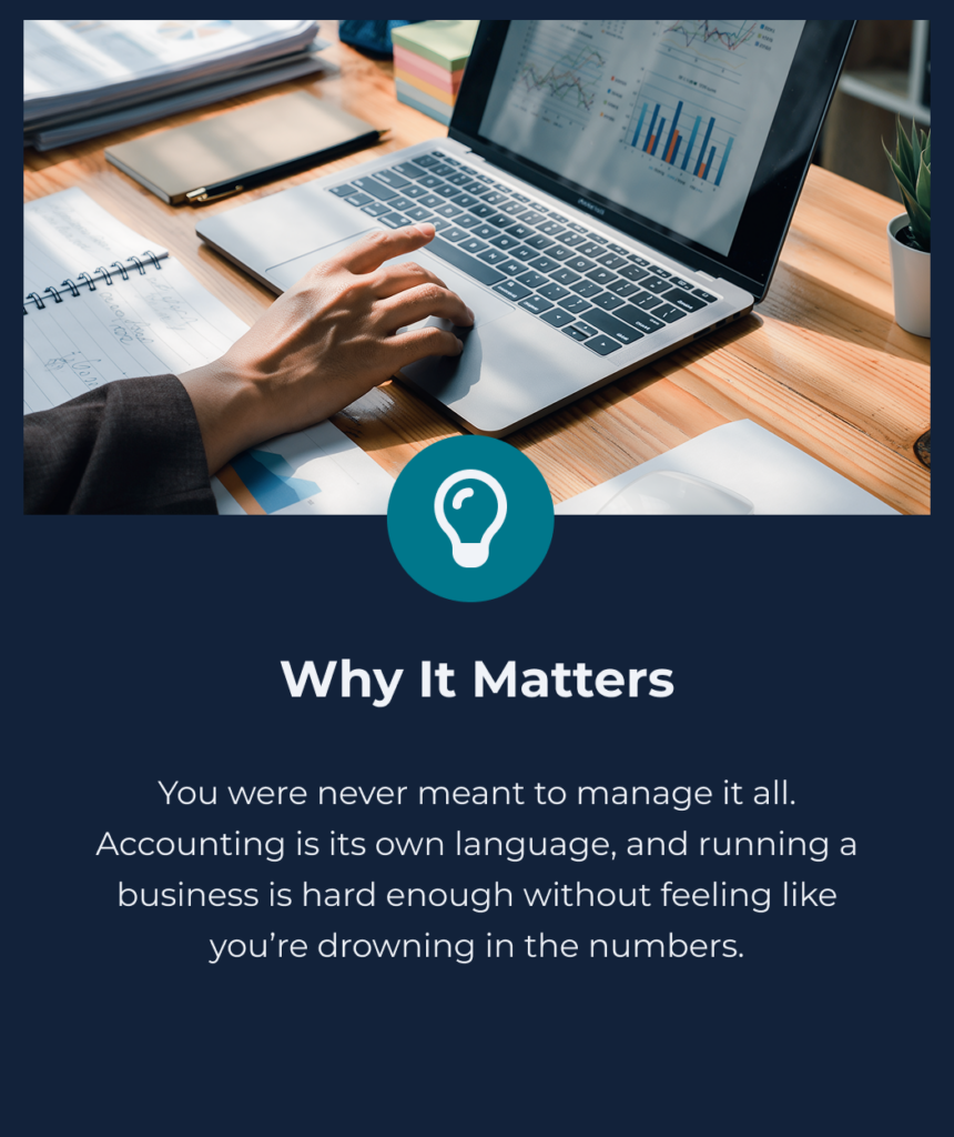 When it comes to your business’s financial integrity, clarity is everything. At Accounted4, we help business owners uncover the story their numbers are telling, where money is disappearing, what’s working, and how to take control of their growth.